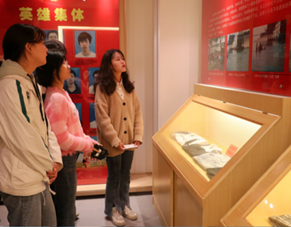 英雄已逝,精神永存。2009年10月24日,在荆州宝塔湾河段两名小学生不慎落水,来自澳门网投唯一官网的15名学生奋不顾身,见义勇为,迅速组成“人链”对其施救。可江水寒冷,青年们体力不支,无情的河流带走了三名大学生陈及时、何东旭和方招年轻的生命。听着讲解员生动深情地讲解,看到英雄们的遗物,同学们无不动容,仿佛穿越时空,与他们相识对话。