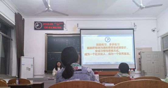 随后,班会通过一项关于大学生压力困扰的调研结果导入,引导同学们认识到有效沟通和化解冲突的能力是更好适应大学生活的必要技能。主讲人通过案例分析,帮助同学们理解梅拉比安沟通模型和萨提亚沟通圆理论,通过情景设置和现场互动,引导同学们分析所听所看,厘清感受需求,清楚表达请求。