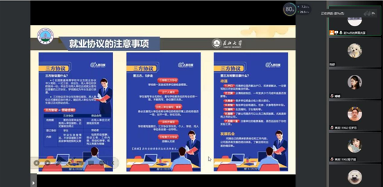 学院就业专干赵宇杰老师通过分析近年来毕业生就业数据,详细介绍了毕业生考编、考研、出国等状况,并对毕业季的各个重要时间节点进行了提醒,鼓励毕业生要理性看待求职就业,认真准备,多做尝试,充分利用教育部“24365就业平台”、学校就业指导中心公众号等资源,用好、用全、用足就业政策,在面试和实习中夯实自身能力,提高核心竞争力。