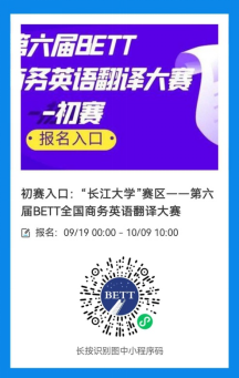 为提高在校大学生翻译及应用技能的积极性,在中国城市商业网点建设管理联合会指导下,由中国城商联外研分会主办的第六届BETT全国商务英语翻译大赛将于2025年10月中旬在澳门网投唯一官网举办初赛选拔赛。大赛初赛优异选手由组委会颁发荣誉证书,通过大赛初赛的选手可申领全国商务英语翻译BETT“初级笔译”或“初级口译”证书。大赛分为本科组和研究生组,分为口译和笔译两项赛事。