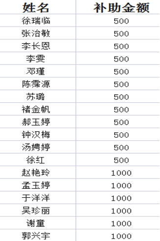 现予以公示,具体名单及金额如下: