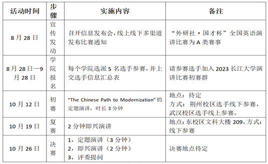 为营造良好的英语学习氛围,丰富校园文化生活,同时,为选拔优秀选手参加2023年“外研社·国才杯”英语演讲比赛(全国英语演讲比赛A类赛事),特举办此次活动。具体通知如下: