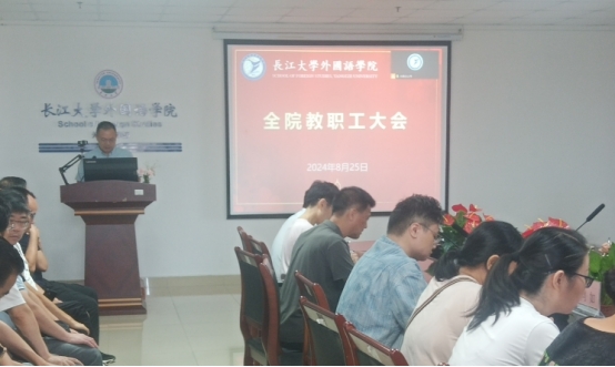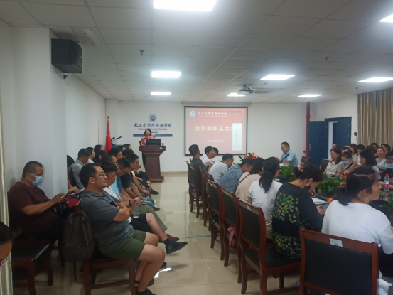 (通讯员 张文)为凝聚共识谋求学院更好地发展,8月25日上午,学院通过线上线下结合方式召开了全体教职工大会。院长谈宏慧主持会议,学院领导班子成员、全体教职工参加会议。