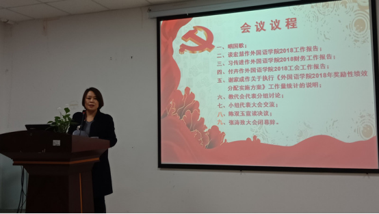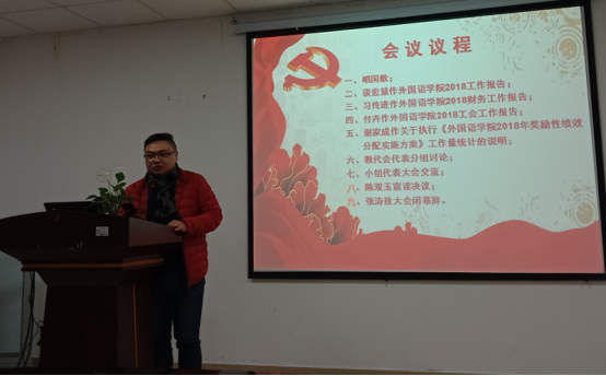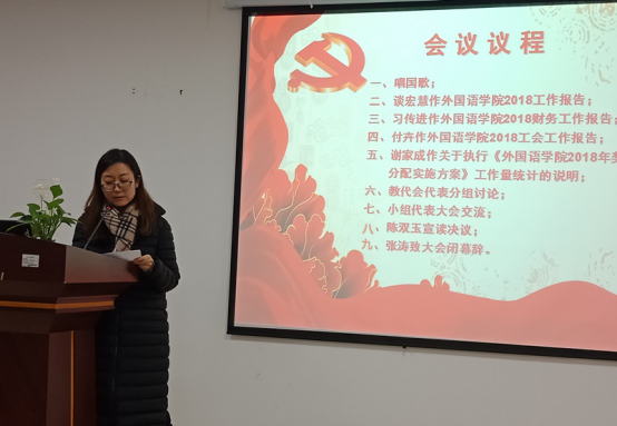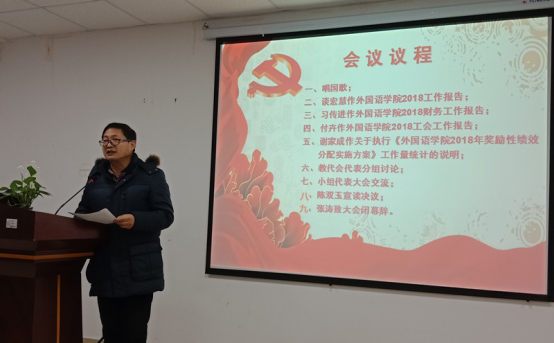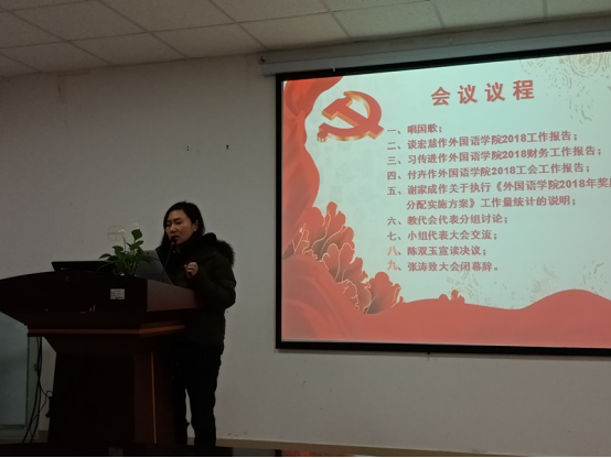 大会听取并审议了院长谈宏慧教授所作《澳门网投唯一官网2018年工作报告》、党委书记习传进教授所作《澳门网投唯一官网2018年财务工作报告》、工会副主席付卉《澳门网投唯一官网2018年工会工作报告》和副院长谢家成教授所作《澳门网投唯一官网2018年奖励性绩效分配实施方案》及工作量统计的说明。会议讨论并通过了《澳门网投唯一官网2018年工作报告和财务工作报告》和《澳门网投唯一官网2018年奖励性绩效分配实施方案》。