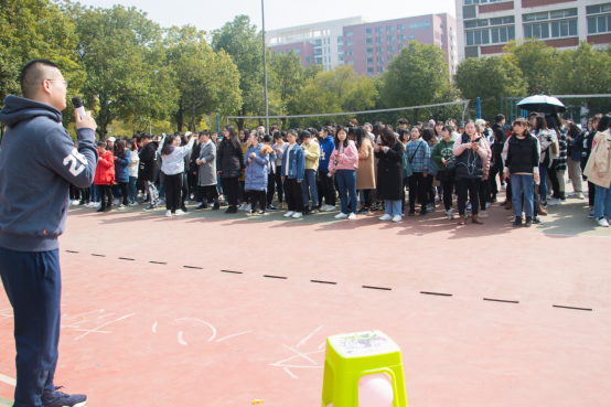 在同学们殷切的目光下李俊老师宣布活动开始。在简单介绍了四个游戏项目的基本规则后,参与趣味运动会的同学们整装待发,在裁判们的带领下进入已经划分好的游戏区域,开始了激动人心的趣味游戏比拼。