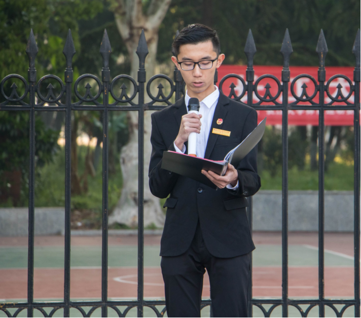 “纵有千古,横有八荒。前途似海,来日方长。美在我少年中国,与天不老。壮哉我中国少年,与国无疆!”全体学生在日语11801班的华思茹同学的带领下齐读梁启超的《少年中国说》,气势恢宏的朗诵展示了中华少年报效祖国的雄心壮志。