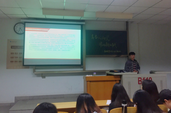 伴随着活动的开始,团委书记杜岳青老师来到现场,并为成员们带来了一份沉甸甸的礼物,“当我们参加任何团组织、党组织的活动,如果我们每个人都能有强烈的仪式感,都抱着最真挚热烈的感情,并佩戴上我为你们准备的这份礼物,相信大家对于每一次活动的意义都会有更深层次的理解,也会更加以学生干部的身份来严格要求自己。”杜老师这样谈到。每一位青马成员排着队接过杜老师手里的团徽,佩戴在胸前,那闪闪发光的勋章更显现出成员们脸上的欣喜和激动。紧接着,活动组长张嘉衡从“峥嵘七十载,与国同圆梦”、“赓续五四精神,奋进复兴征程”和“深入两会,观‘平’语近人”这三个方面分别阐释了中华人民共和国成立70年以来我们的国家取得的辉煌成就,对于五四精神的历史与现实意义,也做了强调,“广大青年要牢记党的精神和宗旨,把党纪国法作为行动标尺,践行民主、追求、真理,时刻把党和人民的福祉放在首位,这才是五四精神仍在如今发光发热的体现吧!”一位青马成员有感而发。随后的生态文明建设、军政军民团结、脱贫攻坚和文艺社科工作这几个方面也向成员们展示了习近平主席在十九大会议上所强调的内容。中间穿插的知识竞答环节也让成员们重温了五四历史,同时也帮助大家深入挖掘五四运动的精神内涵。最后进行的无领导小组讨论,大家讨论热烈,发言积极,论点充分,有理有据,活动气氛积极而热烈。活动以校青马班成员李梓雯同学的分享而结束,她鼓励成员们以高标准高要求来约束自己,同时也祝愿院青马小组活动能够越办越好。