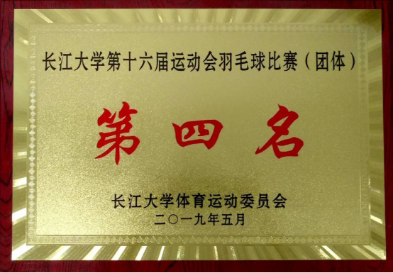 喜报!澳门网投官网羽毛球队荣获澳门网投唯一官网2019羽毛球比赛暨澳门网投唯一官网第16届大学生运动会羽毛球团体赛第四名
