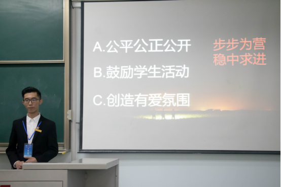 随后是澳门网投官网学生会换届环节,竞选者们精心准备,身着正装。在规定时间内,各竞选人讲明自身具备的优势及对未来工作的打算。经过一番激烈角逐后,学生会成员进行投票,选出学生干部。