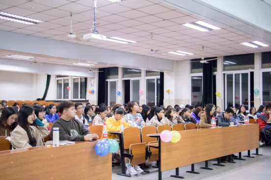 实践分享活动暂时告一段落,令人激动的抽奖环节开始,三位幸运观众收到了志愿者们细心准备的礼物,全场沉浸在欢快的气氛中。随后暑期支教活动分享继续进行,英语师范11702班王随上台发言,她为大家带来了支教过程中师生相处的小故事,感动与不舍,眼泪和汗水,都将成为她心中最深处的温暖。接着是商务英语11703班的王丹妮的分享,她感慨道:“从相遇相知到分别,圆满和遗憾都是最好的遇见。”