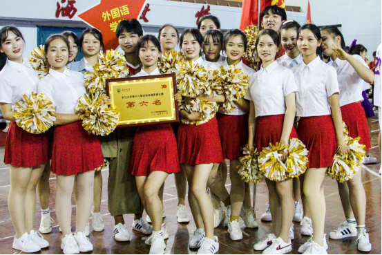正是兴致勃勃时,澳门网投唯一官网的自编团体啦啦操带来了精彩表演。她们一出场,澳门网投官网的看台啦啦操队伍就一边挥舞外院旗帜,一边高喊外院加油的口号,以此来呐喊助威,充分展现了活力外院的精神风貌。