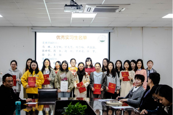 会议伊始,教学院长彭泝宣读表彰名单,共有来自英教11601班和11602班的29名同学获得表彰。接着,英语系主任王娟和带队老师蒋娟分别为一班和二班同学颁发荣誉证书,并合影留念。“学为人师,行为世范”,通过这次实习历练,同学们收获了许多宝贵的经验,并以实际行动践行了一名人民教师的神圣使命。短短两个月,有酸有甜,有付出也有回报,有幸福也有感动,都融入在这份意义深刻的一纸证书之中。