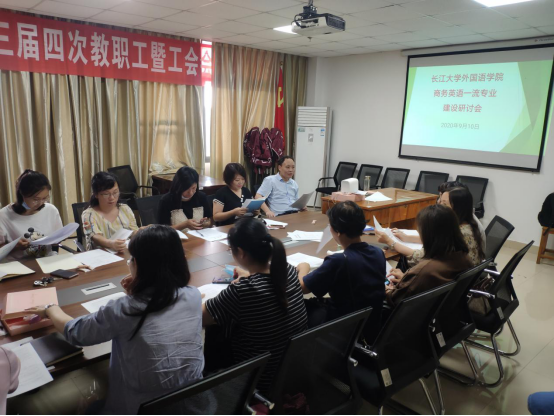 我校商务英语专业于2013年开设,2019年成功获批湖北省一流本科专业,目前正在申报国家级一流本科专业,专业发展势头良好,同时专业建设任重道远,学院领导对此高度重视。会上,谈宏慧院长做主旨发言,对商英英语一流专业建设进行动员和部署,提出以澳门网投唯一官网省级商务英语一流本科专业为对象,整体实施“新文科”背景下一流商务英语本科专业建设的项目规划,并对具体实施方案进行解读。商务英语系教师们按校标研制、课程设置、教师发展、等级考试、平台建设及教学模式研究等方向成立专业建设团队并拟定团队工作章程。彭沂副院长就商务英语产业实验班建设提出指导意见。老师们纷纷就目前专业建设现状,问题和建设实施方案等各抒己见,提出建议,并表示要加强自身理论学习和教研实践,完成从“英语语言教师”到“商务英语专业教师”的转型,多层次形式出成果,为商务英语专业建设竭尽绵薄之力。