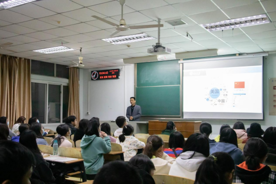 摄/潘佳曦 文/范期明10月6日晚7点,在13教C区119室举办了2020级新生日语系专业介绍讲座,本次讲座由日语系主任李福兴主讲,参加讲座的有2020级新生辅导员童超老师和全体日语专业新生。