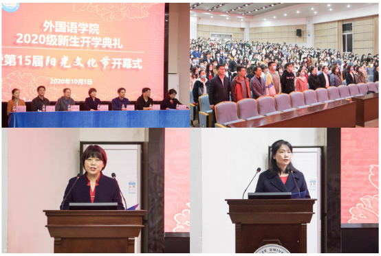(摄/张芷艺 袁缘 文/韩思洁) 朗朗金秋,丹桂飘香。10月5日晚,外国语学院2020级新生开学典礼暨第十五届“阳光文化节”开幕式在12教405举行。澳门网投唯一官网院长谈宏慧教授,党委书记危煜祥老师、副院长谢家成教授、副院长彭沂副教授、党委副书记魏红洁老师,学术委员会主席、博士生导师田传茂教授、教学委员会主席、英语系教师代表鲁志荣副教授,各系部主任、新生班主任老师、学工办辅导员老师出席典礼。我院448名全体新生参加了开学典礼,此次典礼由魏老师主持。