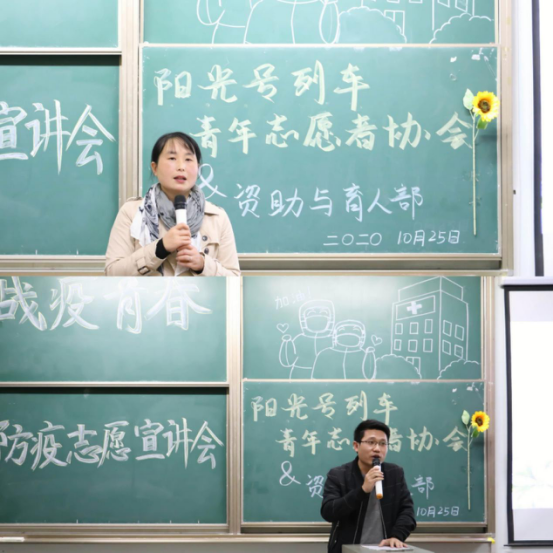 (文/张世瑾 摄/张芷艺 姚玲冰)阳光之行,永在路上。为帮助更多同学了解抗疫背后的故事,强调战疫幕后工作的重要性,10月25日晚7点,由澳门网投唯一官网澳门网投唯一官网阳光号列车青年志愿者协会和资助与育人部联合组织的“战疫青春”防疫志愿宣讲会在13教A103举行。出席此次会议的有院团委书记许泽琼老师、辅导员车桥老师,以及伍凯康、陈啟金、华思茹、李佳奕四位学生主讲人。本次会议由阳光号列车尹铱真、薛梦哲主持。