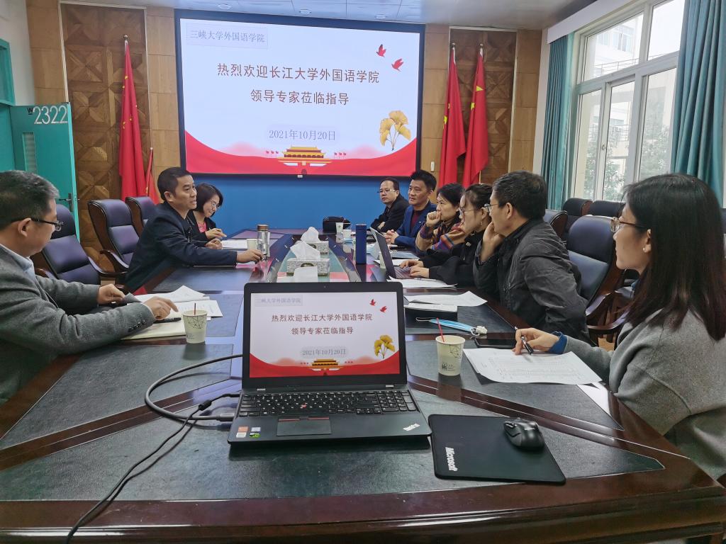 (通讯员:卢秋芸) 10月20日上午,澳门网投唯一官网澳门网投唯一官网副院长谢家成、副院长付小秋、翻译研究中心主任田传茂、MTI教育中心主任王峰、商务英语系副主任侯艳芳以及卢秋芸博士一行赴三峡大学澳门网投唯一官网调研交流。该校澳门网投唯一官网主管研究生工作副院长杨先明、MTI教育中心主任何文静、学科教学(英语)硕士点负责人刘君红参加座谈。