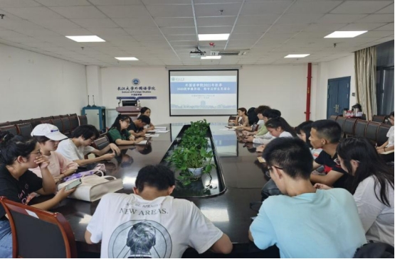 会议伊始,同学们进行自我介绍,随后,教学办肖老师向同学们介绍了各专业人才培养方案、退选课和重修报名的注意事项、强调了学费缴纳学籍注册的重要性,以期帮助同学们顺利度过新学期的适应期;紧接着学工办童超老师就同学们的日常管理做出三点提示,希望同学们尽快报道,尽快适应新环境,尽快投入到专业学习中;最后,程书记发言,他首先向在座的同学表达了热烈欢迎,提出了殷切期望:“要保持对语言的热爱,不骄傲自满,也不妄自菲薄”、“要善于利用身边的资源,遇事学会分享和求助”,言语之间向同学们传递了外院的温暖。