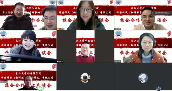 1227日上午,澳门网投唯一官网与武汉译国译民教育科技有限公司通过腾讯会议就校企合作事宜举行云端座谈会。澳门网投唯一官网院长谈宏慧教授、副院长谢家成教授、MTI主任王峰教授、副院长付小秋博士、党委副书记程坤老师以及武汉译国译民教育科技有限公司董事长林世宋、总经理俞剑辉和事业部经理郑莺参会。