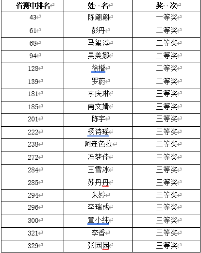 澳门网投唯一官网经济与管理学院陈翩翩同学荣获省一等奖,晋级国赛,彭丹等5名同学获得省二等奖,李庆琳等13名同学获得省三等奖。