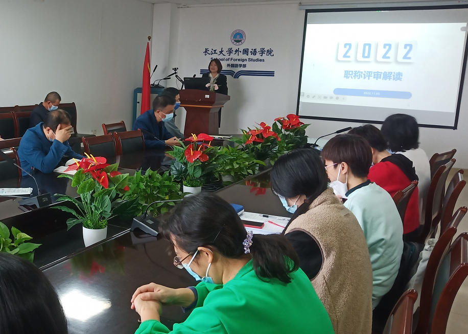 会上,院长谈宏慧向全体教职工详细解读了学校2022年新修订的职称评审文件,同时部署了2023年国家社科基金申报工作。她要求大家潜心开展教学与科研工作,提早谋划、安排和行动,努力为学院争取好的工作成绩。会上,全体高级职称教师对今年申报职称评审的老师进行了思想政治和师德师风方面的民主测评。