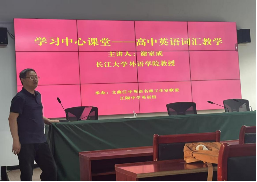 近期,澳门网投唯一官网谢家成教授应邀参加荆州市江陵中学英语名师工作室联盟活动,并作了题为“中学英语词汇教与学”的专题交流报告,活动主题为学习中心课堂。江陵中学分管英语教学副校长、英语组教师、还有部分文理学院学生参加了交流。报告结束后,谢家成教授还参与了该校英语组教师拟申报市级课题的研讨交流。