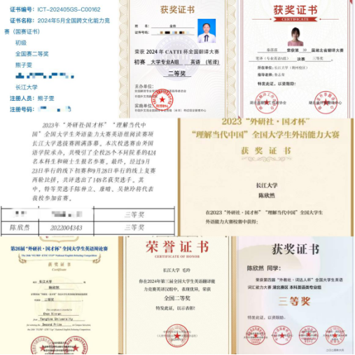 在学科成绩方面,我们英师12201班始终保持着严谨的态度和积极向上的精神风貌 。班级学习氛围浓厚,同学们互帮互助,共同进步。在专业成绩上,我们班级的整体水平名列前茅。班级无一人挂科,平均成绩为84.7,无迟到早退现象,必修课成绩专业排名前10%占班上人数的19%,前30%占班上人数的45%。在英语专业四级考试中,优秀人数10人,良好15人,合格7人。在学科竞赛方面,班级同学积极参与,屡获佳绩:在2024年“外研社•国才杯”笔译和口译竞赛活动中,同学们都积极踊跃报名参加并且一部分同学取得了不菲的成绩。5位同学获得全国跨文化能力竞赛湖北省级奖和全国奖 ;1位同学获得第二届“中外传播杯”全国大学生英语翻译一等奖;2位同学在2024年第三届全国大学生英语翻译能力竞赛英译汉组中荣获全国级奖项;2人获得第四届“外教社 词达人杯”全国大学生英语词汇大赛英语专业组省级三等奖,9人获得校级一二三等奖;1位同学获得2024年CATTI杯全国翻译大赛初赛大学专业A组英语(笔译)二等奖 。在科研方面,多名同学主持和参与大学生创新创业训练计划项目并成功立项,并且有1名同学成功发表论文一篇,1位同学产出完成1篇调研报告成果。日常学习中,同学们在课堂上积极互动,课后互相帮助,分享学习心得和方法,相互激励。