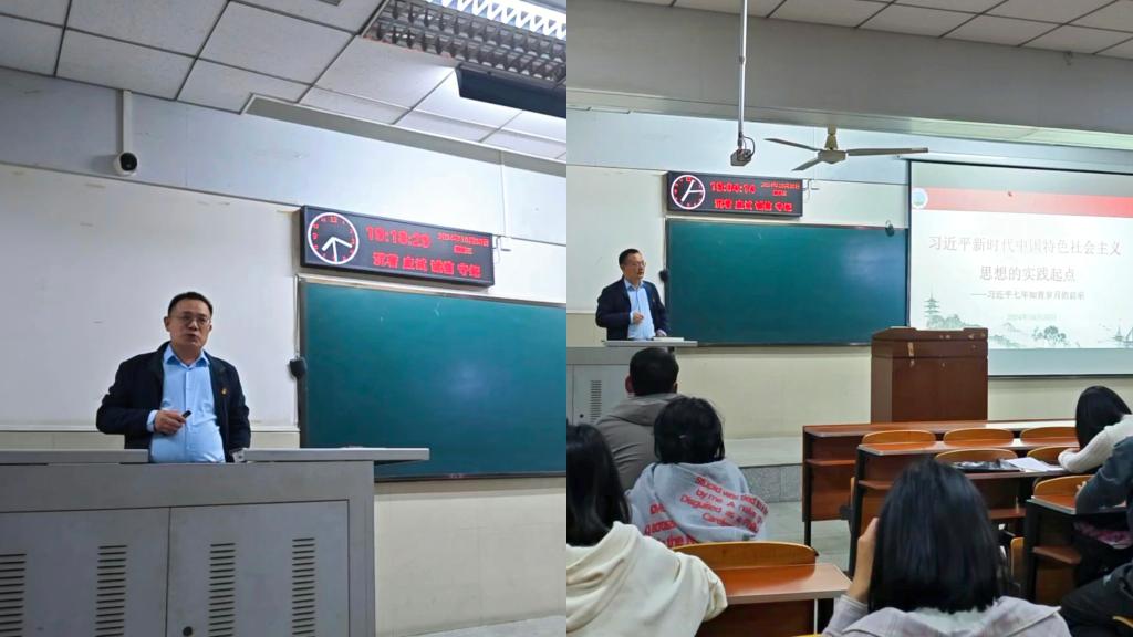 周杰以“学习‘习近平新时代中国特色社会主义思想’”为主题,围绕习近平总书记的七年知青岁月经历,生动诠释了习近平总书记用行动践行全心全意为人民服务的初心,并结合实际激励同学们树立与时代主题同心同向的理想信念,勇于担当时代赋予的历史责任,争做实现“两个一百年”奋斗目标的历史见证者和全程参与者,争做实现中华民族伟大复兴中国梦的坚定实践者和奋力开拓者。