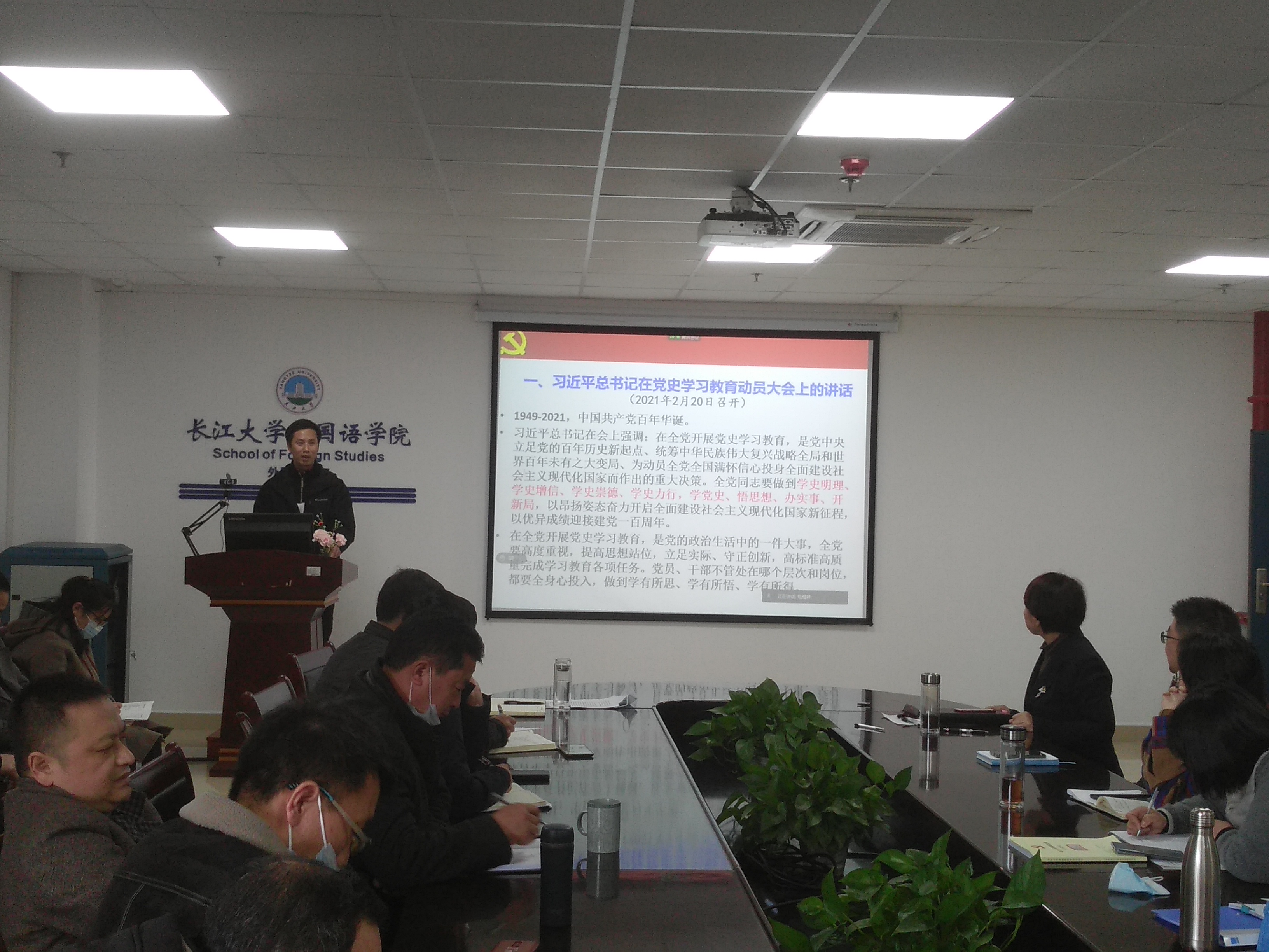 党委书记危煜祥就2021年的党建与思想政治教育重点工作进行了介绍,一是完成一项主题教育(开展好党史学习教育),迎接一次重要检查(做好省委政治巡视迎检工作),开展一次党性锻炼(到校外开展革命传统教育),组织一次表彰奖励(开展“七一”表彰活动),打响一个文化品牌(深入推进“阳光文化”建设),建强一支党员队伍(完善支部建设,发挥党员先锋模范作用)。并带领大家一起学习了习近平总书记在全国党史学习教育动员大会、全国脱贫攻坚总结表彰大会、中央政治局会议、中央党校(国家行政学院)中青班开班式、省部级主要领导干部学习贯彻党的十九届五中全会精神专题研讨班开班式上的讲话精神,学习了十九届中纪委第五次全体会议公报以及应勇书记在全省党史学习教育动员大会上的讲话精神。