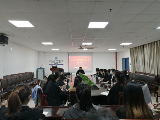 1127日晚,受本科生党支部和研究生党支部的邀请,澳门网投官网组织员汪邦柱在文科楼712会议室为学生党员讲了一堂党史学习教育专题党课。90余名本科生、研究生党员聆听了讲座。会议由本科生党支部书记童超主持。