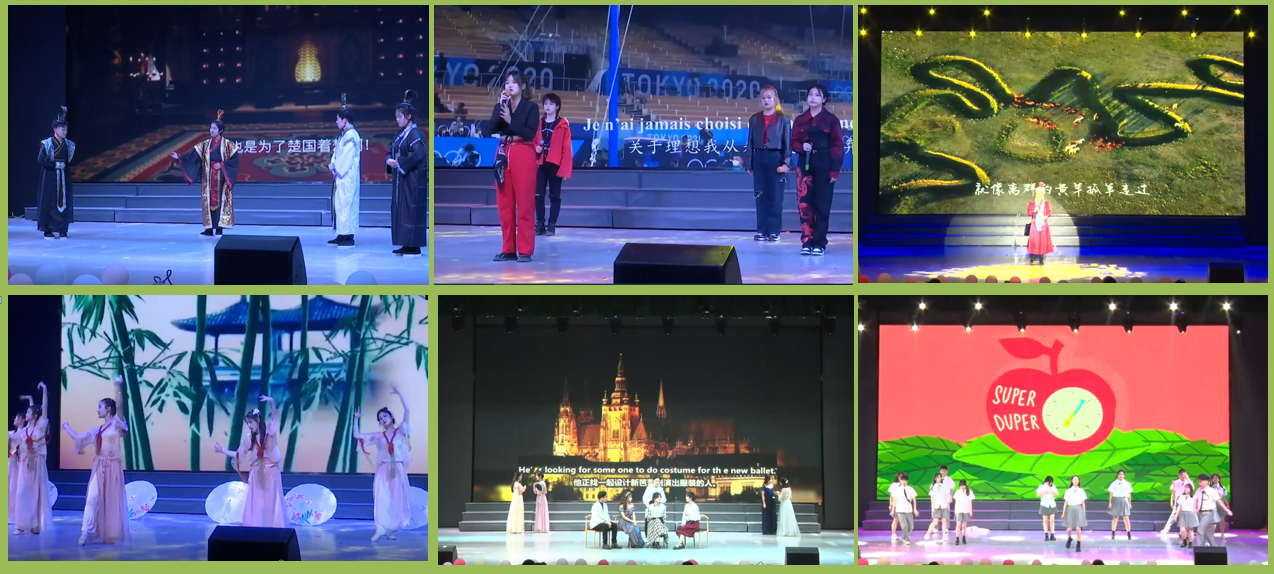 闭幕式文艺汇演在精彩的舞蹈中开场。分为“盛世华章,继往开来,初心难忘谱新曲”“激扬青春,强国有我,英姿奋发正当时”两个篇章。整台晚会彰显特色、突出专业、精彩纷呈,线上观众热情高涨。汉语、英语、日语、俄语、法语5个语种演唱的歌曲《追梦赤子心》,带领观众领略不同语言的魅力;笛萧合奏《无羁》,古风古韵,回味无穷;外文剧团呈现的经典剧作《Midnight in Poris(午夜巴黎)》,地道的英语、绅士且高雅的表演、华丽的场景深深打动着观众们的心;日语配音节目《辉夜姬大小姐》、教师韩艳丽博士倾情演唱的蒙语歌曲《忘不了》等节目全面展示了不同语言的文化底蕴与特色……澳门网投唯一官网师生用丰富的艺术形式展现多彩校园文化生活。颁奖晚会在合唱《光荣啊,中国共青团》中圆满落幕。