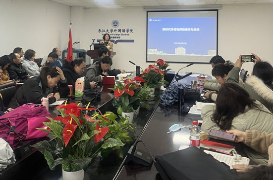 最后,院长谈宏慧以“新时代外语教师的使命与挑战”为题,给全院教职工上了一堂专题党课。她以引人深思的“教育三问(为谁培养人?培养什么样的人?怎样培养人?)”展开,用生动的语言把新时代外语教师的使命与挑战娓娓道来,让大家对“教育三问”有了更深层次的理解。她希望全院教师牢记教师的责任使命,坚持立德为先、树人为本,努力做立德树人的典范。