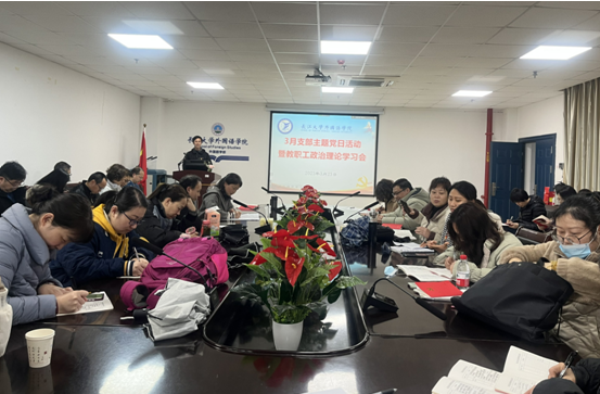 (通讯员 肖娜芸)3月23日下午,学院在文科楼712会议室开展了3月“支部主题党日”活动暨教职工政治理论集中学习会。会议由党委书记危煜祥主持,会议采取线上线下结合的方式进行。
