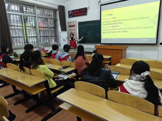 本次教学活动的主题为“计划假期旅行”。小老师首先给老年学员们播放了两段有关旅行的视频,用真实的场景让他们感受到旅行的乐趣。然后志愿者老师带领老人们学习有关旅行的基础英语单词和句子,耐心细致地解释每个单词的含义和发音。接着,主讲小老师通过一个小游戏使活动现场的氛围更加娱乐轻松。最后是本次活动的重难点环节——由小老师为大家讲解了条件状语从句。