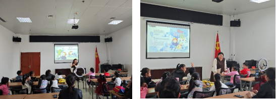 (通讯员 李子钰)11月3日下午,“绘声绘色”英语绘本故事会活动在荆州市图书馆一楼多媒体教室如期开展,并通过抖音平台“荆小图”账号实现全程线上直播。这是澳门网投官网“阳光号列车”研究生志愿队参与的第64期“绘声绘色”活动。澳门网投官网2023级学科英语专业研究生贺静同学,2024级学科英语专业研究生李子钰和张子晗同学,以及2024级英语笔译专业研究生李璇分别作为主讲师和助教参与此次活动。