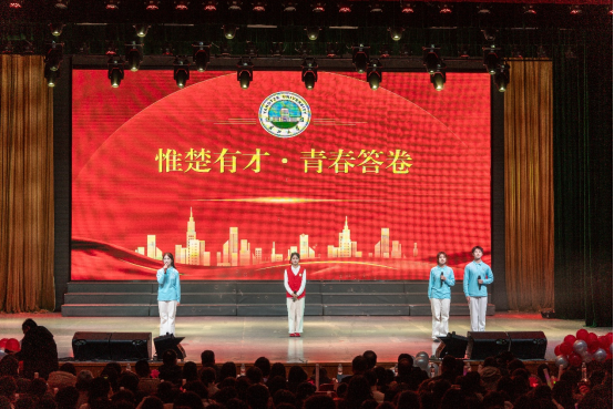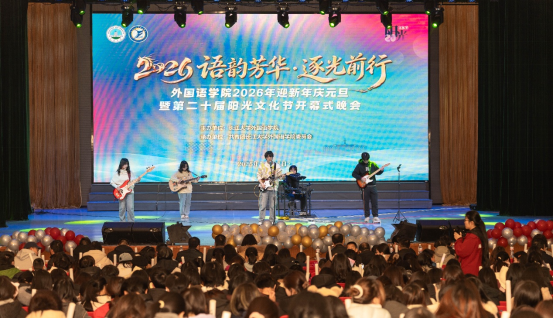 整场活动围绕“青春初见·语你启航”“楚楚风华·世界传声”“岁启新章·共赴光程”三大篇章有序展开。在开场环节,活力四射的乐队演出率先点燃了全场热情,精彩的开场舞将现场气氛推向第一个高潮。随后,一系列形式多样、内容精彩的节目相继亮相,展现了外院学子多才多艺的综合素质。晚会特别设置了“阳光个人”与“阳光集体”表彰环节,对在学业科研、社会实践、志愿服务等方面表现突出的先进个人和集体予以表彰,充分发挥榜样示范作用。