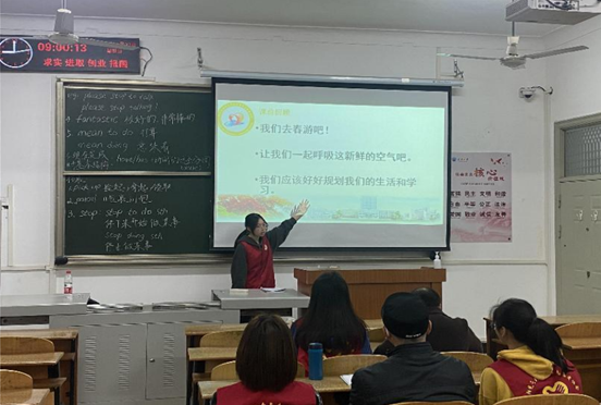 活动中,主讲人给大家讲解了本次教学的课文,志愿者细心答复。