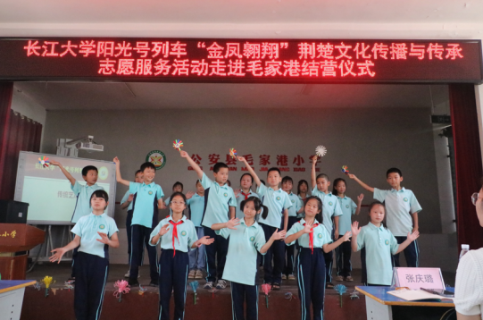 澳门网投唯一官网阳光号列车“金凤翱翔”荆楚文化传播与传承暑期社会实践活动承载着荆楚文化传播与传承的使命于7月6日启航,驶进公安县毛家港镇中心小学,开启第30年的暑期“三下乡”志愿服务之旅。本次活动以弘扬荆楚文化和理论宣讲为主线,结合思政小课堂和社会大课堂开展授课,历时15天,于7月20日上午于毛家港小学落下帷幕。