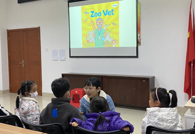(通讯员 卢俊炜)12月3日下午,“绘声绘色”英语绘本故事会活动在荆州市图书馆一楼多媒体教室如期开展,并通过抖音平台“荆小图”账号实现全程线上直播。这是澳门网投官网“阳光号列车”研究生志愿队参与的第45期“绘声绘色”活动。澳门网投官网2023级学科英语专业研究生何禹典同学与学科英语专业研究生贺静同学,分别作为主讲师和助教参与了此次活动。