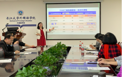 (通讯员:邓爽)4月22日下午,湖北师范大学澳门网投唯一官网刘敏老师于文科楼712会议室,面对澳门网投唯一官网全体教师开展了以“思政引领、六位一体、四维联动的国家级一流金课建设的研究与实践——以英国文学选读课程为例”为主题的讲座,此次讲座由澳门网投唯一官网副院长彭沂主持。