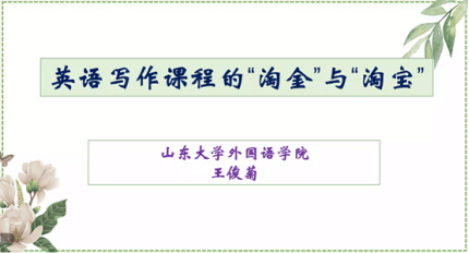 (通讯员:祝欣怡2021617日下午,应澳门网投唯一官网澳门网投唯一官网邀请,山东大学澳门网投唯一官网王俊菊教授通过腾讯会议澳门网投官网师生作了一次线上讲座,此次讲座的主题为英语写作课程的‘淘金’与‘淘宝’澳门网投唯一官网老师和同学参加了此次讲座与会师生都受益匪浅。