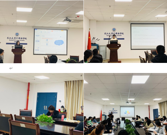 本次报告会伊始,贺荣昭同学从电子档案袋评价概述、电子档案袋外语教学评价研究和翻译教学评价三个部分进行讲述,为电子档案袋外语教学评价在我国的应用和推广提出自己的意见。随后,谈宏慧教授作了相应补充并建议其将教师对电子档案袋的看法纳入考察范围。接着,魏翔宇同学以体验式学习模式为出发点,并结合本校商务英语教学实际情况,探讨了体验式学习模式是否能提高大学生国际贸易实务课学习投入等问题。面对同学们对这一概念的疑惑,谈宏慧教授指出:体验式学习是一个大概念,应将关注点放在体验式学习的具体方式上,比如虚拟仿真平台、企业实习等。