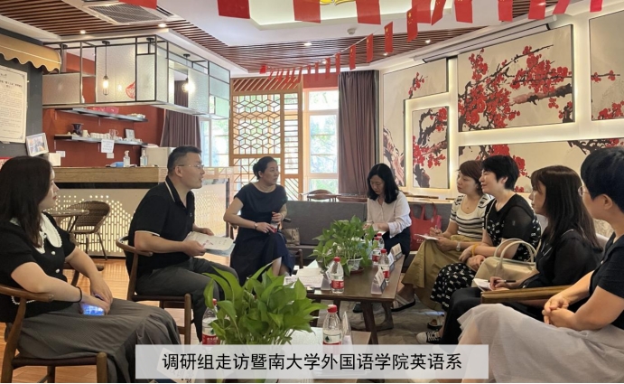 6月12日下午,调研组走访暨南大学澳门网投唯一官网,该院英语系主任朱红强博士以及杨才英、林维燕、沈佳、段凯歌四位老师出席座谈会,双方就人才培养目标、课程设置、大学生创新创业项目开发及学生就业等议题展开了富有成果的探讨。