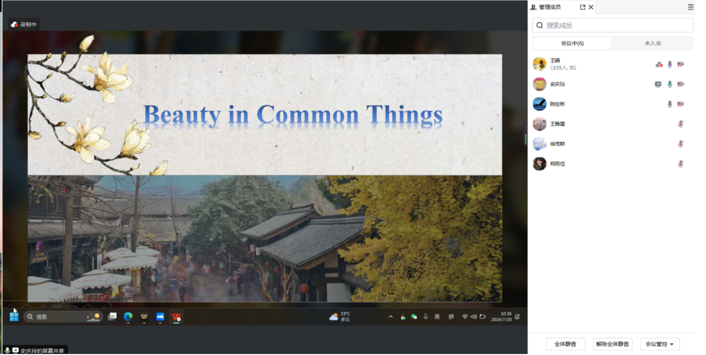 陈主任对史庆玲同学的授课进行了精彩生动的线上点评。他从核心素养培养的角度出发,认为课程目标达成度较好,逻辑性较强,授课环节环环相扣。他建议在导入部分可以让学生动手做小工艺品如剪纸等,强化学生的主体意识,调动学习积极性;在阅读中,可以结合中国传统文化中的风俗和文化禁忌等,帮助学生强化文化意识,培养学生的文化素养;同时他强调阅读课的归属问题,阅读是为写作服务,可以通过课后背诵、翻译句子、设计作文等形式完成学生从输入到输出的转换。此外,他结合一线教育经历,希望大家保持开放学习的态度,同时保持自己独特的教学方法。